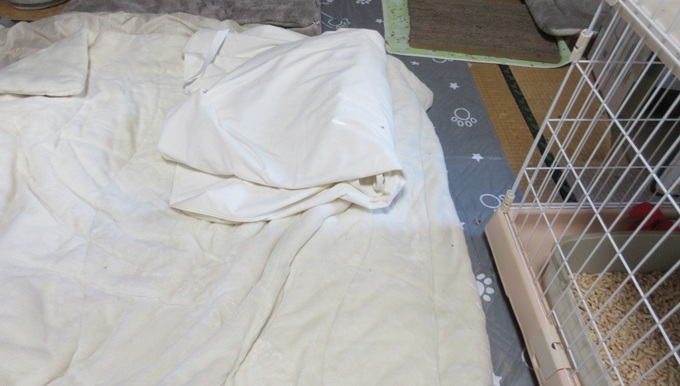 お布団にお粗相(@ ̄□ ̄@;)!!だってかまって欲しいんだよーヽ(`Д´)ノ |