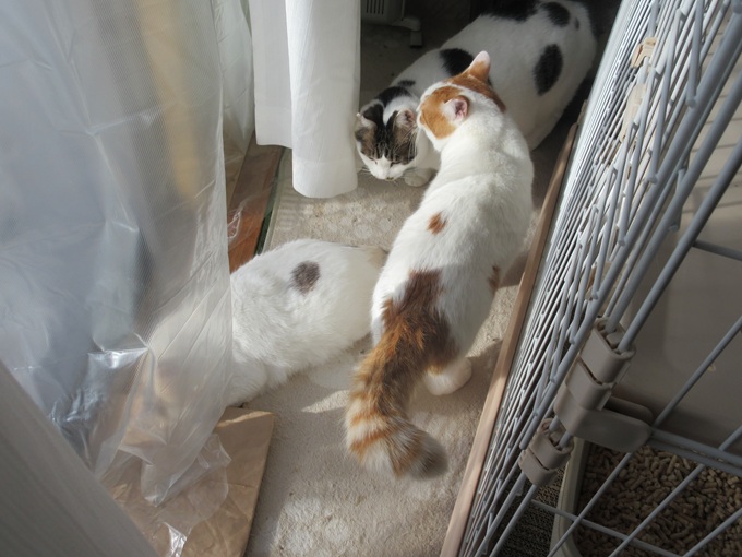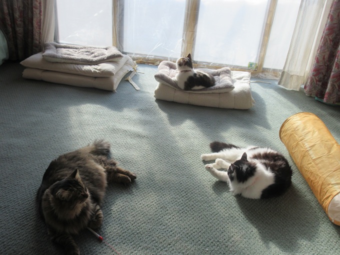 ![]() 僕はキジトラきじた君<(`^´)> ソファーはあったかいにゃん(#^^#) 電気毛布の上に毛布を掛けてもらってるよ にゃ? しもべ お顔かゆいの? 目のふち回り・・? お鼻がぐすぐす・・;; ![]() それって・・抜け毛が原因にゃよ・・;; 猫族はお洋服をナメナメ♪ お手入れするよ 脱け毛についた唾液が 猫アレルギーの原因なんだよ(´・ω:;.:... ・毎日の掃除機かけ頑張ってしてね ふわふわ ふんわり抜け毛を何とかしなきゃね ・布ものの抜け毛をとってお洗濯するにゃ! ・敷物は抜け毛がつかないものに交換! できるだけ敷物は置かない! ・カーテンは定期的に洗濯ニャ! ※ 抜け毛がつきにくいカーテン(ペット用)もあるよ ・愛猫のブラッシングもお手伝いしてニャ ・空気清浄機フィルターっ交換にゃあ(≧▽≦) ※ 猫族はお水が苦手だよヽ(`Д´)ノプンプン 猫のシャンプーは、猫族のストレスの原因になるから できるだけひかえて、ブラッシングを頑張ってね ![]() 猫族は冬物のお洋服 換毛期なんだよ 黒猫毬(まり)ちゃん 脱け毛あちこちで・・ ぼさぼさ・・・;ごっそり抜けてるよ! しもべには ブラッシングさせないけど 季節が来るとちゃんと毛代わりするんだよ<(`^´)> 少し茶色がかった黒いお洋服 いまじゃあ真っ黒 艶ピカになったんだよ(@ ̄□ ̄@;)!! 抜け毛が多い日本猫にゃもん(*^▽^*) ![]() キジ白 ちーちゃん♡ 抜けないように見えて やっぱり日本猫(`・∀・´)エッヘン!! たっぷり 抜けてるよ ![]() 白三毛ネコママにゃと 茶白君は 洋猫mixにゃもん ![]() たっぷりお日様浴びて ふわふわのお洋服 茶白君のおしっぽは 普段でもふわふわ ぼわぼわ(⋈◍>◡<◍)。✧♡ 白三毛ママにゃは青い目にゃよ 洋猫血統が入ってるよ?? ![]() 長毛キジトラらて君♪ 見かけより抜け毛は少ない猫種だよ 毛は長いけど・・; 脱け毛の本数は普通だよ ![]() シャムmixアオちゃんも シャムmix 黒猫ブライアン君も 抜け毛は少ないもん(`・∀・´)エッヘン!! ![]() 猫ホテルは多頭飼育 空気清浄機20畳用 6畳に1個相当 置いてるよ 今日はフイルター交換するよ ※ 空気清浄機は、部屋の広さの倍くらいのパワーの物がお勧め 効果が十分発揮するよ (6畳=12畳用 8畳=16畳用) ![]() 12月の初めに交換してから約2か月で…( ;∀;) ![]() (@ ̄□ ̄@;)!! これ全部僕たちの抜け毛なの? 全部で5台 チェックしたよ 場所によって、多い少ない場所があるよ 今回は3個交換! ![]() 洗えるペットシート 届いたよ(*^▽^*) 今までは、カーペットラグだったけど・・ 脱け毛や爪とぎの屑・・・猫砂がついちゃうよ つめとぎ、下にもぐってボロボロにしちゃったよ ![]() マーキング対策に(104cm×104cm) 吐いても・・すぐに拭き掃除できて 洗濯できるよ(*^▽^*) ![]() 今回は2畳用を2枚! 吐いてもすぐに洗えるように小さいのを敷いてもらったよ これ 抜け毛がつきにくいし 猫砂もすぐに 掃除機で吸い込むよ ![]() 乾くまで、少し水だれ・・ 洗えるペットシートを敷いてから干しているよ ![]() 大運動会しても、畳は無事(*^▽^*) 吐いても、チッコしてもすぐふき掃除 洗濯できるよ クッション性がないから・・少し物足らないかな ![]() 次は 僕たちのベッド(クッション) 抜け毛がたっぷりついてるよ コロコロで、しっかり抜け毛をとって洗ってもらうよ ※ コロコロは毎日でもok! 洗濯は、自分のテリトリーを侵略されるのと同じだよ 人間だって他の人が入ったら嫌でしょ! 週1・・・位に控えてね ![]() いい天気にゃあ(*^▽^*) 猫タワー満員御礼だよ ![]() あめしょmix カラちゃん♡ うず巻き模様がはっきり! 猫フードって食べ始めて約3か月位から 効果が目に見えてハッキリわかるんだって(@ ̄□ ̄@;)!! からちゃん 被毛がふんわりしなやかになって 柄が、よくわかるようになったよ(#^^#) ![]() コロコロがすんだら 洗濯ネットに入れて洗うよ 中で、ゆふゆふ・・・お洗濯できるように、大きなサイズのネットを使うよ ![]() 抜け毛がつかない 専用洗剤もあるけど 今日は「抗菌アタック!」 仕上げに柔軟剤(静電気用)も使うよ(#^^#) ※ 静電気が、猫毛をくっつける原因! 柔軟剤で、対策だよ 食べ残し・・・僕たちの皮脂汚れも 抗菌洗剤ですっきり(*^▽^*) 洗濯ネットは細かい網目 洗濯中に 抜け毛が他に広がらないんだよ(`・∀・´)エッヘン!! ![]() 1枚・・2枚・・3枚・・ 僕たちの寝袋(シュラフ)はお布団かわり 被毛がつきにくくて、洗濯できるのがいいんだー! シュラフは広げて、みんなのお布団だよ ![]() ソファカバーの毛布も お洗濯してもらったよ(*^▽^*) ![]() シュラフ 爪とぎ いい気持ち(#^^#) ![]() 日向ぼっこ 窓際より すこし 内側 冬はひざしが長く入ってくるんだよ ![]() 食いしんぼブライアン君は ちょっとぷよぷよ・・;; ダイエット中(`・∀・´)エッヘン!! カロリー控えめごはんだよ ![]() 食事管理! 自分のケージでごはん貰うよ 猫族のダイエットってすごく難しいよ 運動・・ではだめにゃン( ;∀;) ちゃんと食べすぎないようにフードで管理されちゃうんだよ 僕と長毛キジトラらて君! ご飯タイムは myケージで! カロリー控えめなカリカリ パウチ