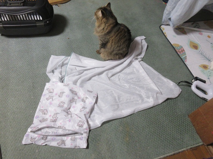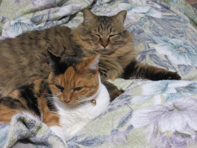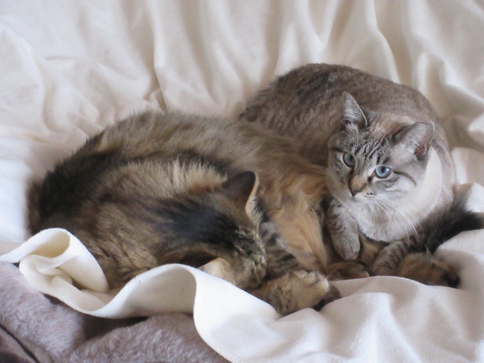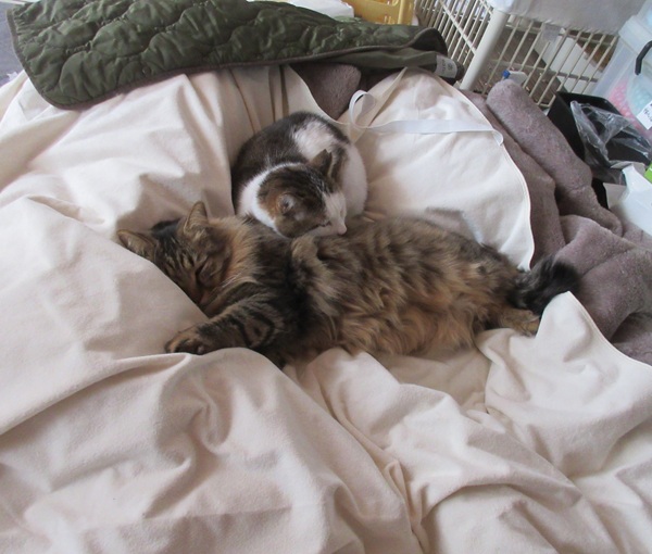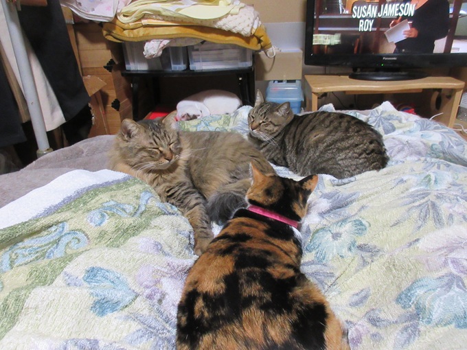 ![]() 今年の冬は大雪にゃ(@_@;) とっても寒いにゃよ・・・ こんな日はしもべのお布団で寝るのがさいこーにゃあ(*^▽^*) ![]() 僕は長毛! ふわふわあったかいのが自慢にゃよ<(`^´)> みんな僕と一緒に 猫団子してるよ ・・しもべはお布団の端っこ♪ ![]() 朝起きたら 僕たち 猫団子(⋈◍>◡<◍)。✧♡ しもべ・・僕たち起こさないように 布団からそおっと抜け出すよ しもべ 僕たちのために 布団カバーを上にかけてるよ ・抜け毛・・布団汚れ防止! ・フードの吐き戻し・マーキング対策! 本当はしもべのためだよね? タオルケットや介護用防水シート等使って こまめに洗濯してるんだよ ![]() これ僕たちの抜け毛だよ(`・∀・´)エッヘン!! 洗濯ネットをつかうと、内側に抜け毛のフェルトができてるよ まめにブラッシングしてもらってるけど 効果は…どうなのかね ![]() 洗濯ネットは、抜け毛が洗濯中に拡散しないような「網目が細かい」もの! 洗濯ものがゆとりで入るサイズの物! 洗濯中にネットの中で ゆとりで洗濯ものが動くものがいいよ タオルケット用は白い布団用の洗濯ネット 猫柄の方は、猫用クッション用だよ 間違わないように「猫用!」って 書いてあるよ ![]() 洗濯洗剤は「粉洗剤」を使っているよ 猫用の洗剤じゃなくても大丈夫なんだよ 僕たち猫族の汚れは 主に 皮脂汚れ・泥汚れ! 液体より粉洗剤の方が汚れ落ちがいいんだって(#^^#) ![]() 脱け毛対策には「柔軟剤(静電気防止入り)」を ときどき使ってるよ 毎回使うより効果があるよ ![]() 僕たちの憩いの場♪ しもべのお布団 愛用猫が多いから 週2回お洗濯されちゃうんだ(ヽ(`Д´)ノ しもべ わかっていないよ! 猫族は自分のテリトリーの物をこまめにお洗濯されると 嫌なんだよヽ(`Д´)ノ もう少し、少なくてもいいよ 冬は室内を閉め切って、換気が少ないから しもべ〈人間)・・お顔がかゆくなるんだって(@ ̄□ ̄@;)!! にゃ?! しもべって、猫族じゃあないの! てっきり仲間だと思っていたよ・・・; 僕たちテレビ大好きだよ 自然番組 動物や鳥が出たら 画面に猫パンチ! 冬の夜長は しもべと一緒に見るんだよ ![]() にゃ! お掃除の時間にゃあ・・ お布団たたんでしまわれちゃったにゃあヽ(`Д´)ノ 自分のお部屋(ケージ)に戻ろうかなあ 夕方お布団敷いてもらうのが 待ちどうしいにゃあ、