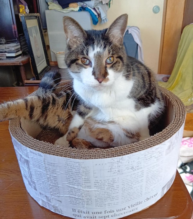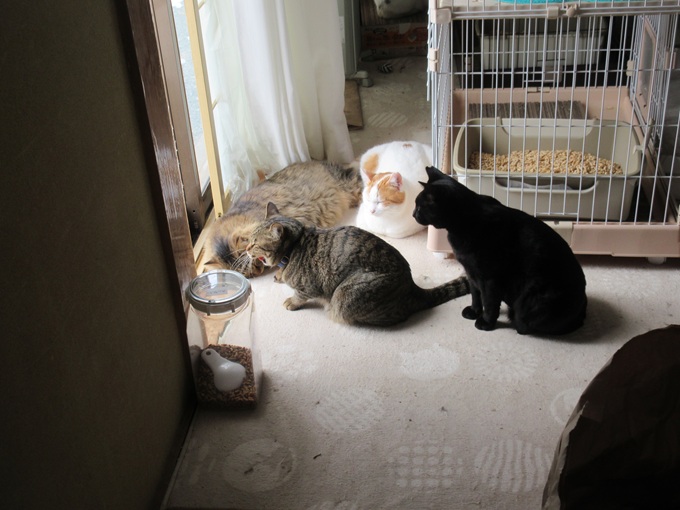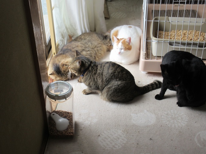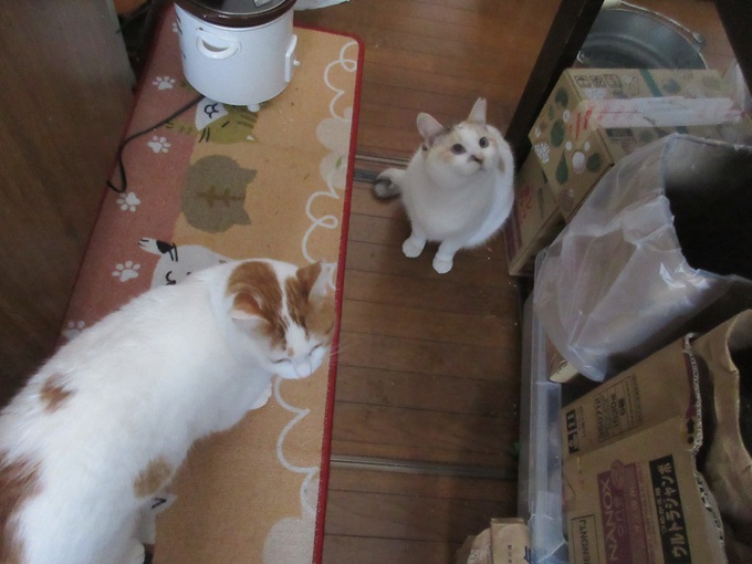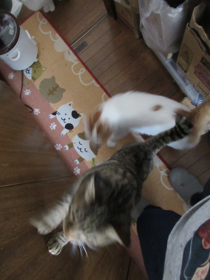 ![]() おはようにゃあー(*^▽^*) かあーかあ♪ カラスさん一家 ご挨拶に来たよー にゃ! ギチギチ・・ギチギチ・・ 興奮してるよ 僕たち ![]() 僕たちの食べ残し♪ カラスさんたちのごはんなんだよ(`・∀・´)エッヘン!! ![]() 朝のおめざ・・ 食べたいなあ♡ 猫パウチ大好き がまんできないや ![]() 僕たちのランチョンマット 食べ残しカリカリは、まとめて鳥さんにあげてるよ にゃん 今日はすくないにゃよ<(`^´)> ちゃんと食べ切ったよ ![]() 猫パウチ 早速いただいちゃった!(^^)! ![]() 冬の秘密兵器 ほっとフードウォーマーだよ(`・∀・´)エッヘン!! 電気ポットでお湯を沸かして ![]() カップ焼きそば「一平ちゃん」の空き容器 熱湯入れてもとけないし、しもべ〈人間)もやけどしないよ(#^^#) 猫ホテルは多頭飼育 1箱あっという間に食べちゃうよ 電気製品 冬の寒さを防いで・・安全第一! キッチンにはもう電化製品の置き場もないよー( ;∀;) 電気のホットフードウォーマ― パウチは39度がよく食べられるんだって(@ ̄□ ̄@;)!! イイにゃあー;; 欲しいよー ![]() にゃあヽ(`Д´)ノ キジ白のんちゃん ずるーいにゃよ カップ焼きそばのケースで温めている猫缶。猫パウチ まだかなあーw ![]() 僕たちみんな待ってるにゃのに・・ まだかにゃあ あったかいのは良い香りが広がるんだー(*^▽^*)(*^▽^*) ![]() キッチン出待ちしてるよ ![]() がまんできにゃいにゃー 僕が先ニャー ![]() クンクン いい香りだよー 一口だけお味見だよ ペロリ♡ 美味しいにゃ♪ ![]() たべおえたお皿 きれいに洗って消毒済(#^^#) ![]() 一足先にいただいちゃった ごちそう様ニャン(⋈◍>◡<◍)。✧♡ 次はだれの分かにゃ・ 順番・・順番♡ ![]() 今朝は猫缶 マグロの味わいゼリーよせだよ クンクン 良い香りだよ 缶詰には バターナイフ! みんなにとり分けてもらうんだ(*^▽^*) ![]() この猫缶はみんなが大好き(*^▽^*) 猫缶のトレイを追いかけてみんなで 廊下を先回りするよ myルーム(ケージ)でいただくんだー(*^▽^*) キジ白カラちゃん 大急ぎ 他の猫にとられないようにお尻でガード わき目もふらず食べてるよ ![]() キジ白のんちゃんも バクバク モグモグ(⋈◍>◡<◍)。✧♡ ![]() シャム アオちゃんも♡ それぞれに1皿だよ(#^^#) myルームだから安心して食べられるんだ 横取り禁止なんだよ ![]() 黒猫ままにゃ 毬(マリ)ちゃん 柱の陰からのぞいてるよ 警戒にゃ 毬ちゃんのお部屋(ケージ)にも届けてもらうよ ![]() お腹いっぱいにゃよ ![]() これはお外ネコくんのカリカリ クンクン♪ ![]() いい香りニャン 僕たち にゃるそっく(⋈◍>◡<◍)。✧♡ ここに入っておいでよー サッシ窓 5cm位あけて換気してるんだよ 窓から前足をいっぱいいっぱいに伸ばしてお外ネコくんを呼んでるよ 精一杯前足伸ばすけど カギがかかって出られないよ( ;∀;) ![]() 全員に配り終えたら お皿を洗って ![]() 今度はお水の交換だよ ぬるま湯を入れてもらうんだ(*^▽^*) 陶器製の水飲み 水の温度は 室温に左右されにくいよ たくさんのめるんだ!(^^)! ![]() ここで 一休み♡ しもべのデザート 静岡県名産のきらぴ香 少し小さいのは 栃木県産とちおとめ 僕たちのフードも 届いたよ(*^▽^*) ![]() 20kg箱入り 雪がたくさんで しもべ〈人間) よっコラショって 室内に運んだよ ![]() 運送屋さん? 穴をあけたのは うちのしもべ〈人間) 冬だというのに・・花巻も 熊さんで大騒ぎ(@ ̄□ ̄@;)!! 一度食べられたら、何回も熊さんが来るよ・・・; 熊さんはお鼻が利くよ 何キロも先から食べ物のにおいを嗅ぎつけて 川沿いに、来るんだって(@ ̄□ ̄@;)!! 段ボール箱の穴からいいにおい 僕たちも、段ボール・フードの袋を破って盗み食いするよ<(`^´)> ![]() 今年はフードをキッチンに保管して熊さん・猫族対策!してるんだ ダイニングキッチンは、フードストックでいっぱい(⋈◍>◡<◍)。✧♡ ![]() みんなでうろうろするからかな? フードの入ってきた段ボール箱 貰ったよ(*^▽^*) キッチンはドアを閉められちゃったよ( ;∀;) ![]() つめとぎ…ボロボロニャよ( ;∀;) ![]() ピンポーン♪ にゃあ お客様ニャン ![]() ハンドメイドボランティアさんにゃあー(*^▽^*) つめとぎいっぱいにゃよ ![]() にゃんともシステムトイレの空き箱 つめとぎに変えてもらったよ ばありバリバリ・・! 今日はマタタビの粉ふりかけてもらったよ さいこーにゃあ ![]() たくさん交換用を中に詰めたら 猫ベッドだー(*^▽^*) ![]() 黒猫ままにゃ毬ちゃんと白三毛ネコエルサちゃん 日向ぼっこきもちがいいにゃね ![]() まあるい爪とぎにも 交換用の爪とぎもらったわー(*^▽^*) 外見は愛用してボロッだけど 中身は新品だわ ![]() あたし黒猫ままにゃ毬ちゃんよ たくさんもらったから 多頭飼育のネコ達にお裾分けするにゃよ 猫トイレ、ちょうど1年使ったわ 新品猫トイレに交換してもらったのよ(*^▽^*) 猫族って猫トイレにこだわるのよ<(`^´)> よく洗っても、チッコの臭いがするのよヽ(`Д´)ノプンプン 人間にはかすかににおうだけでも 猫族には嫌だわヽ(`Д´)ノ 猫トイレは廃棄処分! 空箱は・・再活用するのよ にゃんと